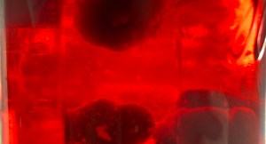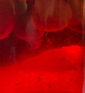 About half the sugar still solid last week has dissolved. The color has remained about as red, though the majority of the berries are now white.
