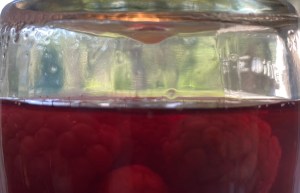 I’m opting to make two types of raspberry cordial – one like what might have existed in the story (i.e. non-alcoholic); the other a bit boozy. The boozy version is a bit easier to make – but it takes time.