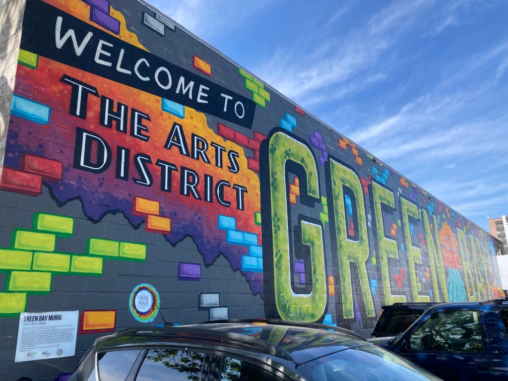 For a lot of people who don’t live in this city, when they hear our name, they probably tend to think football. If you asked them what else we might have, chances are that artists are low on that list, if they’re mentioned at all. However, we have a thriving artist community here – we have painters and sculptors and musicians and writers and on and on. We have large concert venues, as well as hole-in-the-wall spots for folks just starting out. We have the Weidner Center for Performing Arts. We have the Neville Public Museum and the incredible Art Garage. And we have an annual Mural & Busker festival. 🙂