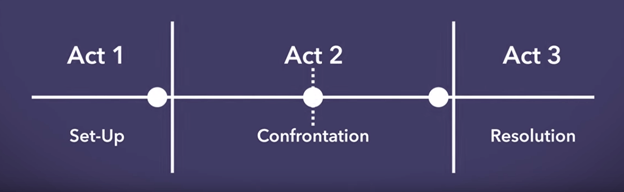 The three-act structure is somewhere in between Freytag’s and 15 Beats. It can be helpful to sit with the Three Act Structure template when you are planning out your story – fill in your plot points so that you know what you are writing to and what scenes you will need to develop. (This does not mean you can’t change the story as you write.) How detailed you want to be is up to you.