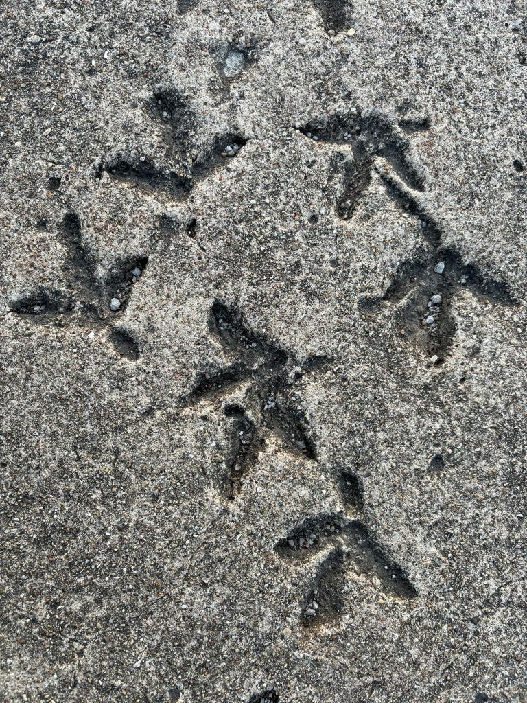 Nilwood, IL – I had woken up earlier than originally planned my second morning because there was a storm coming I wanted to miss. This meant I hit my favorite stop a bit after sunrise. At first, I wasn’t sure if I could even turn down this particular stretch of road – but you can indeed. People live right off this section of the original road! When this section was laid in Macoupin County in the 1920s, a turkey left it’s mark, thirty-four marks to be exact, in the wet cement. The tracks, now over a hundred years old, remain.