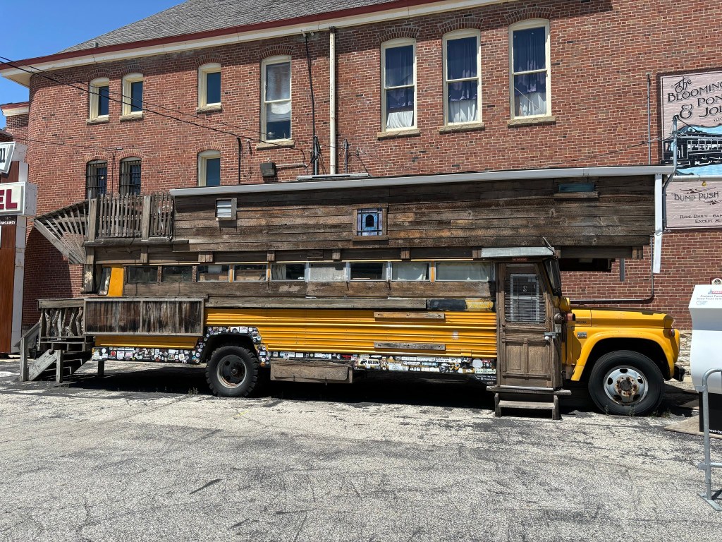 Pontiac, IL – The Route 66 museum in Pontiac is a must stop. They have a lot of memorabilia, but also, the owners are knowledgeable and happy to chat. Pictured below is the “School Bus Road Yacht” of Bob Waldmire, a self-proclaimed hippie who spent decades driving the route and creating sketches of what he saw. The museum in has one of his murals inside, as well as his orange 1972 VW Microbus. That Microbus was the inspiration for Fillmore (Cars, Pixar), who was originally going to be named Waldmire in his honor – but the plan was abandoned because Waldmire, an ethical vegetarian, was unwilling to sell marketing rights to Disney for a series of McDonald’s Happy Meal toys. (Can you even imagine how much money he turned down?)