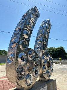 I made a super quick stop on my way out of Springfield to check out the 66 hubcap sculpture.