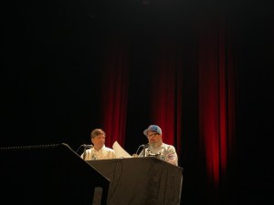 After they finished recording, they hosted a bit of a Q&A when audience members could ask questions. (I had one, but not the nerve to get up and ask.) The best question goes to a kid named Logan who simply asked – “How do you know all this stuff?” 🙂