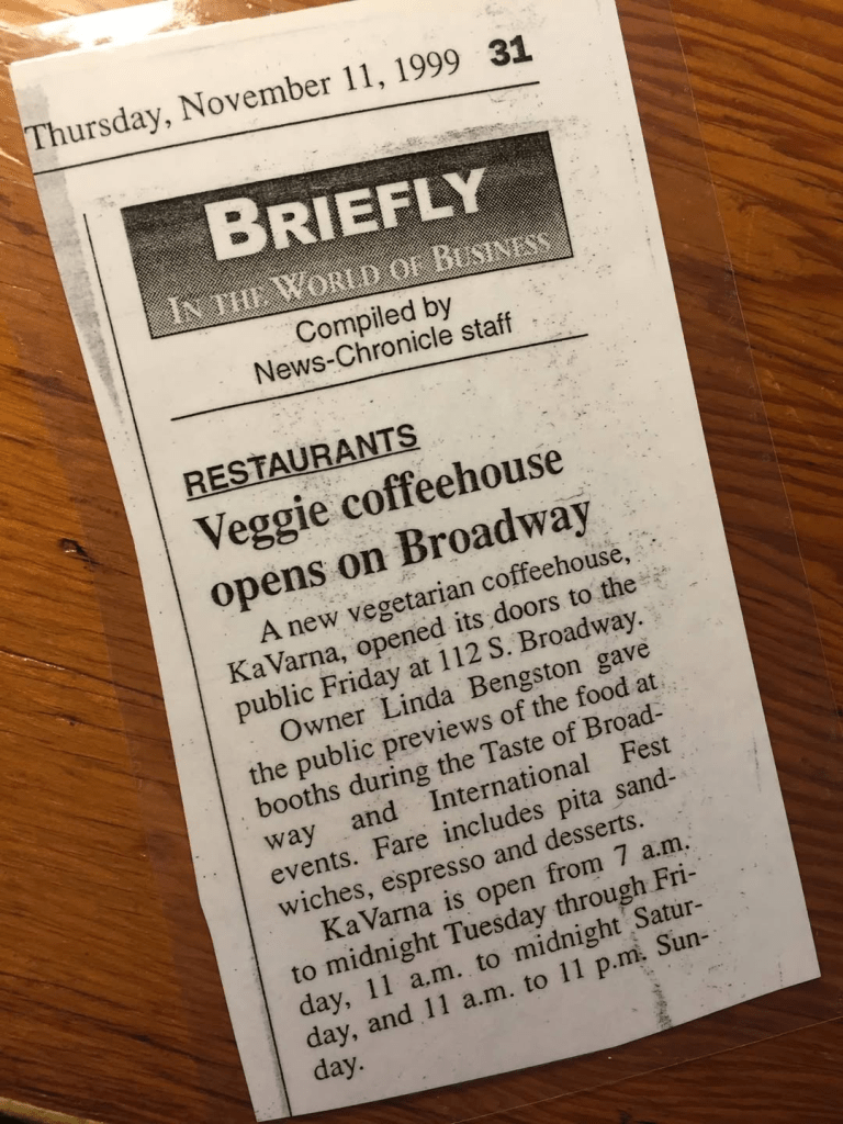 It also made me realize that I’m coming up on another twentieth anniversary – with my favorite cafe. At the end of my final semester of college, I met someone who has became a such dear friend of mine, my Ashley. At the time, she was vegan, and there weren’t a lot of places we could meet out and about. Enter: Kavarna.