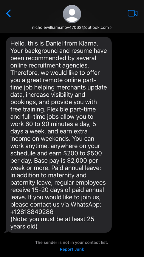 - In addition, no one is going to offer you a job through a text message based on some resume you didn’t send them. If you are working with a head hunting agency, you might get a cold call – but it will come through a phone number or email you can locate on the company website (and the head hunter will probably give you a heads up that it is coming). Either way, you would have to still interview before you would get an actual job offer.